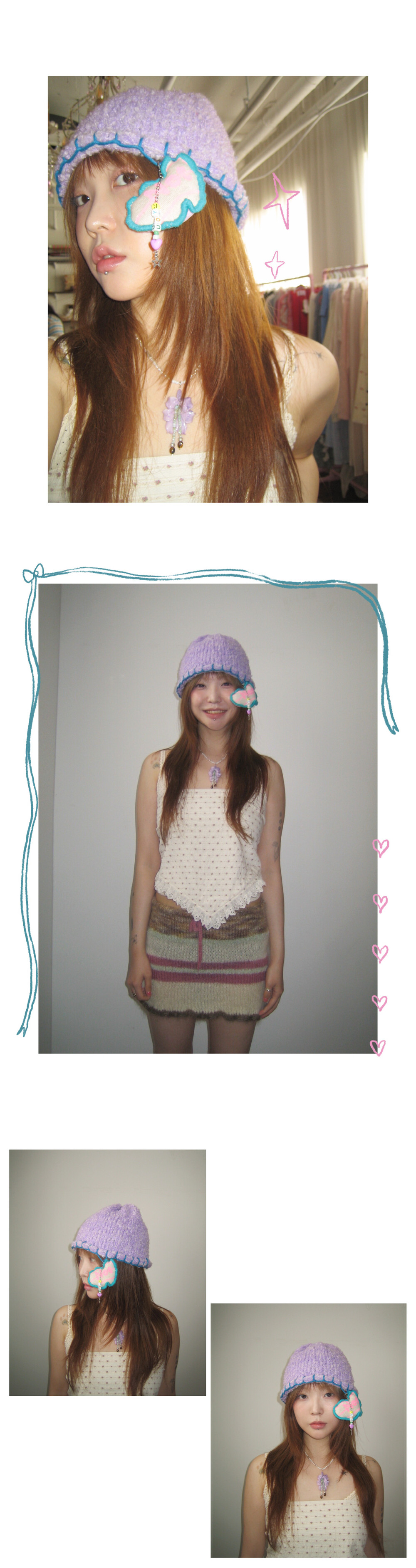 [ lim_chive X minjiena ] Heart Charm & Stitch knit Beanie