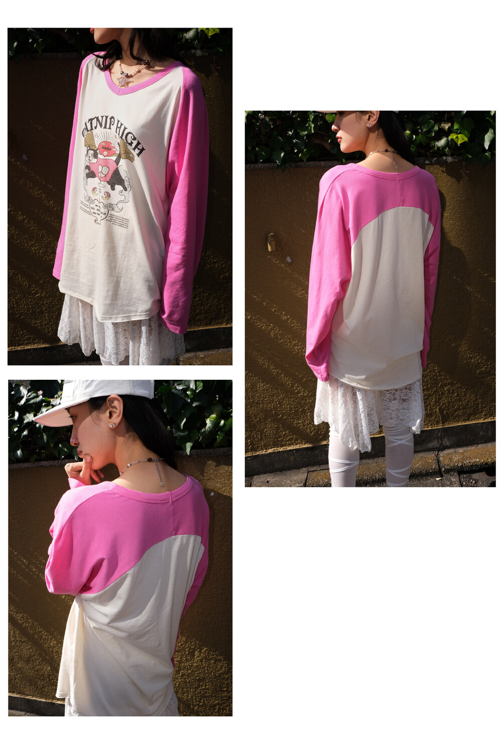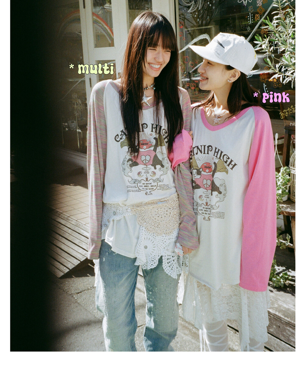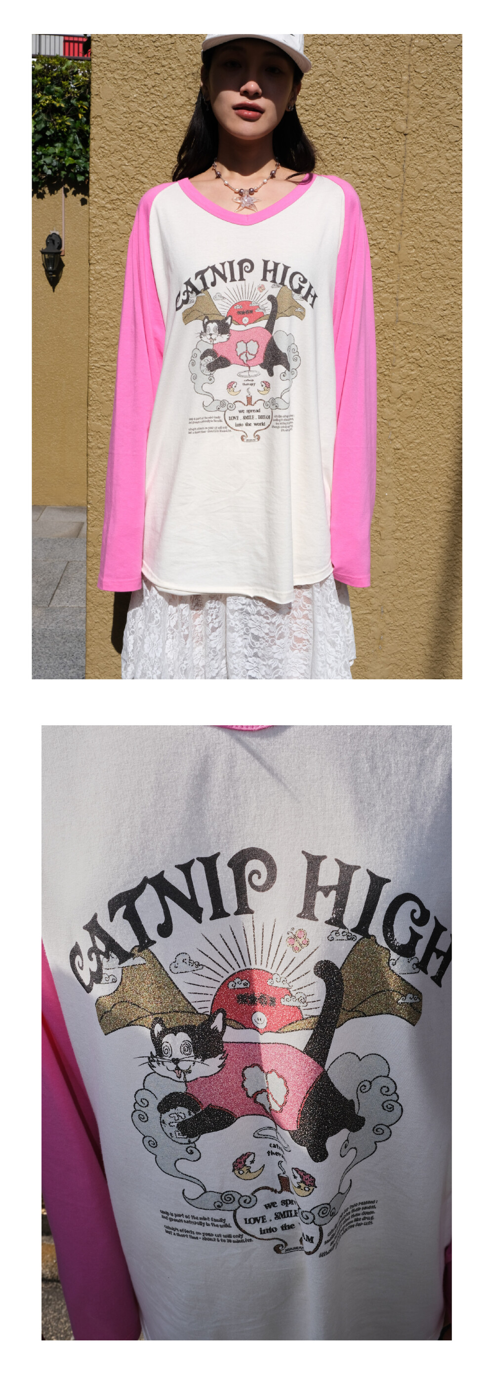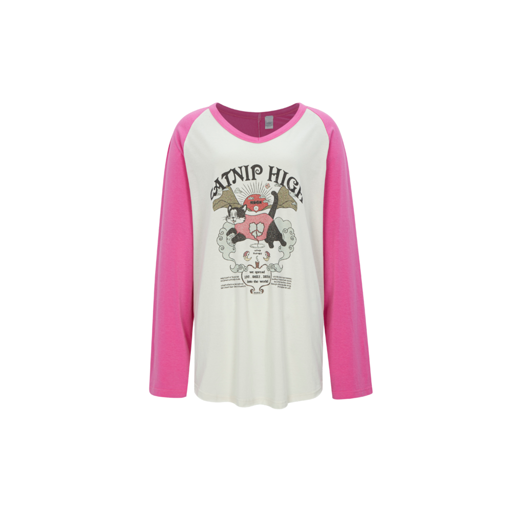 CATNIP HIGH long t-shirt pink
