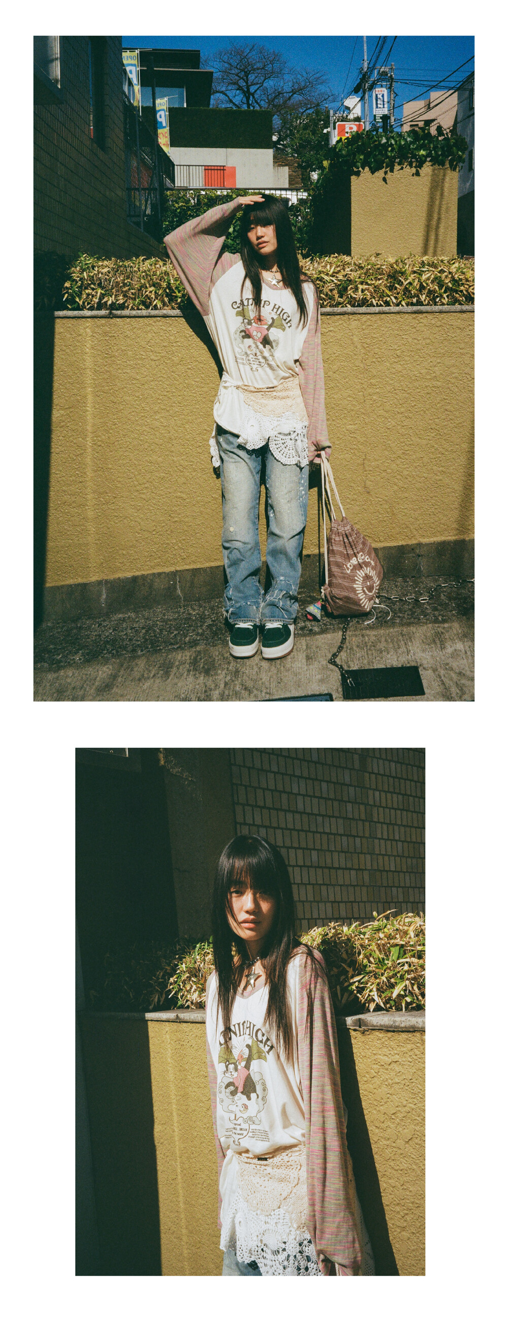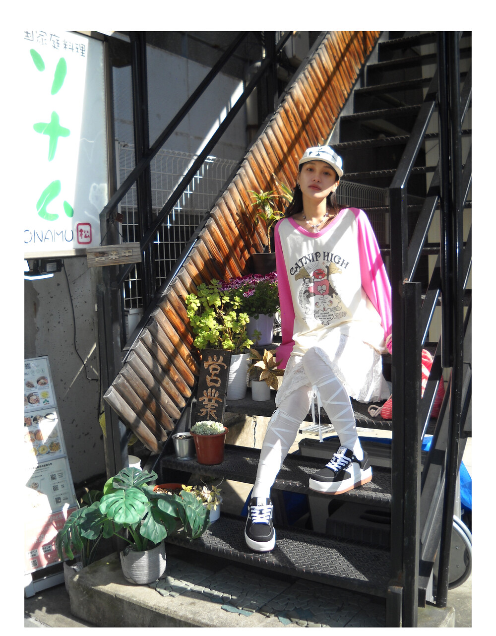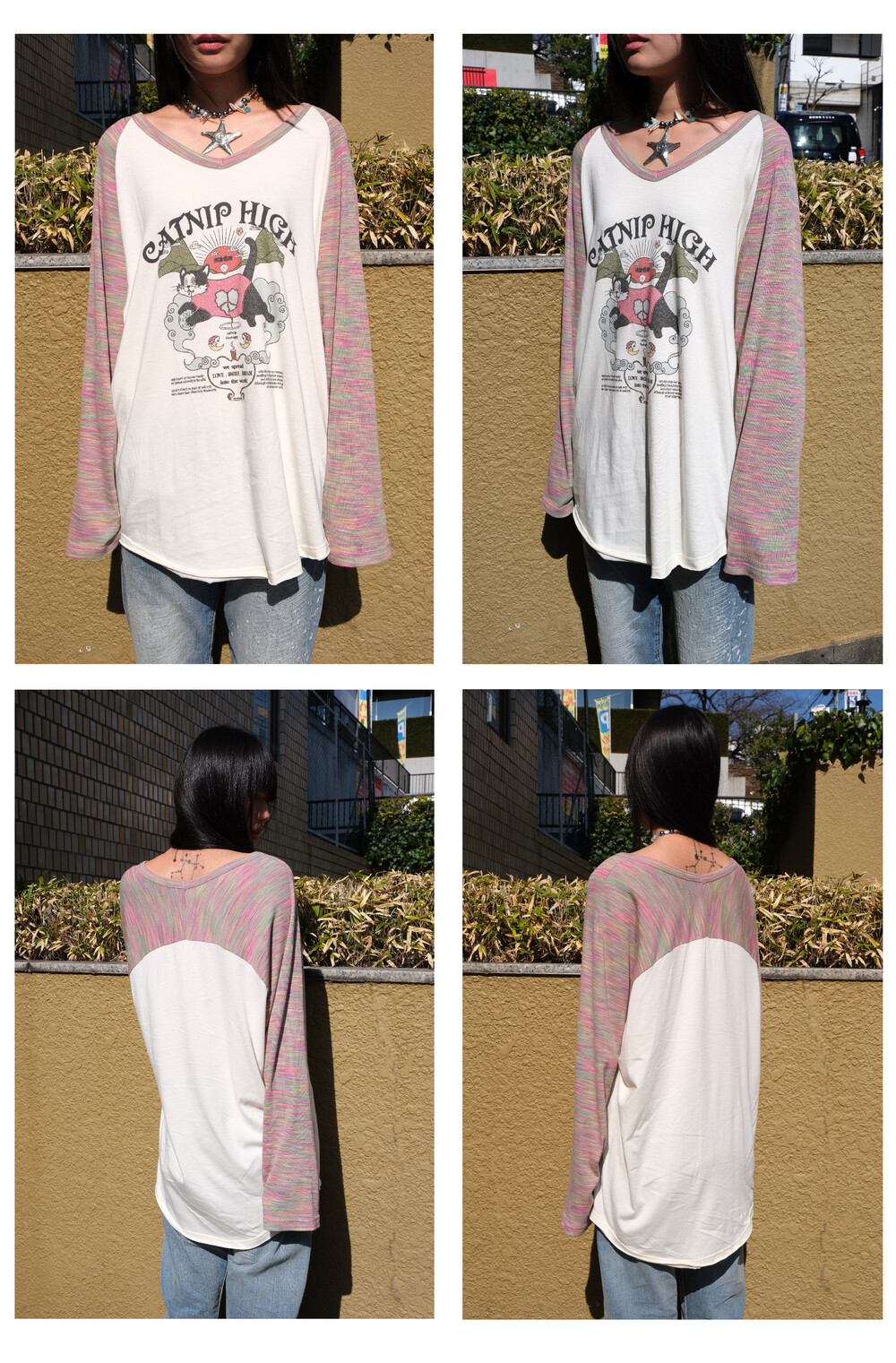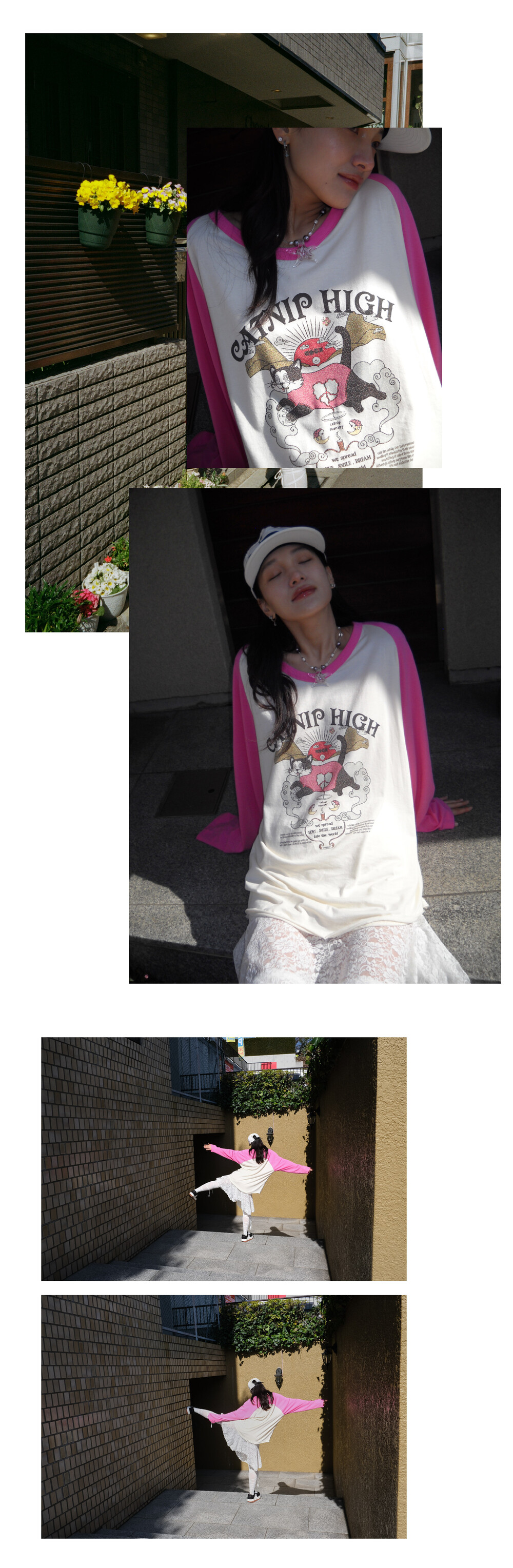 CATNIP HIGH long t-shirt pink