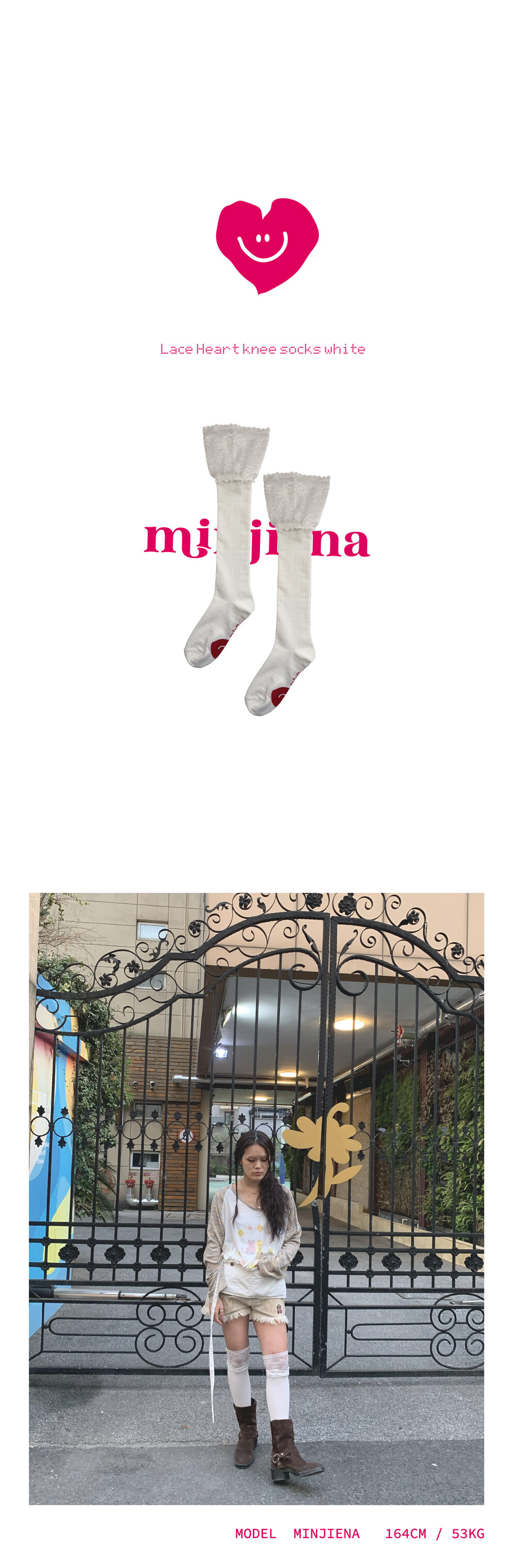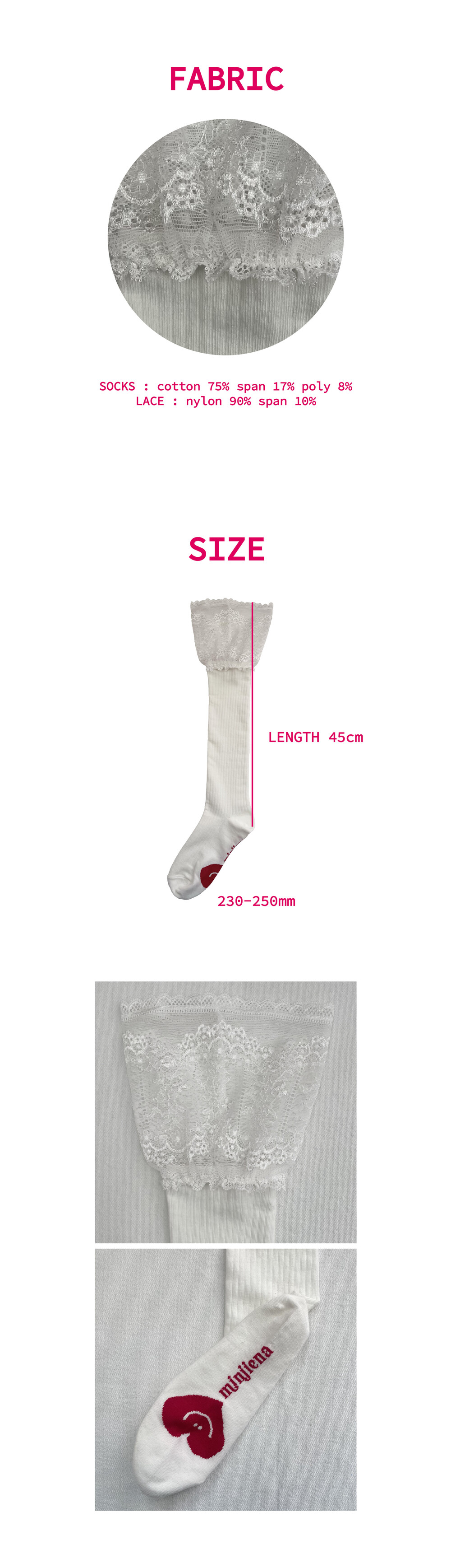 Lace Heart knee socks white