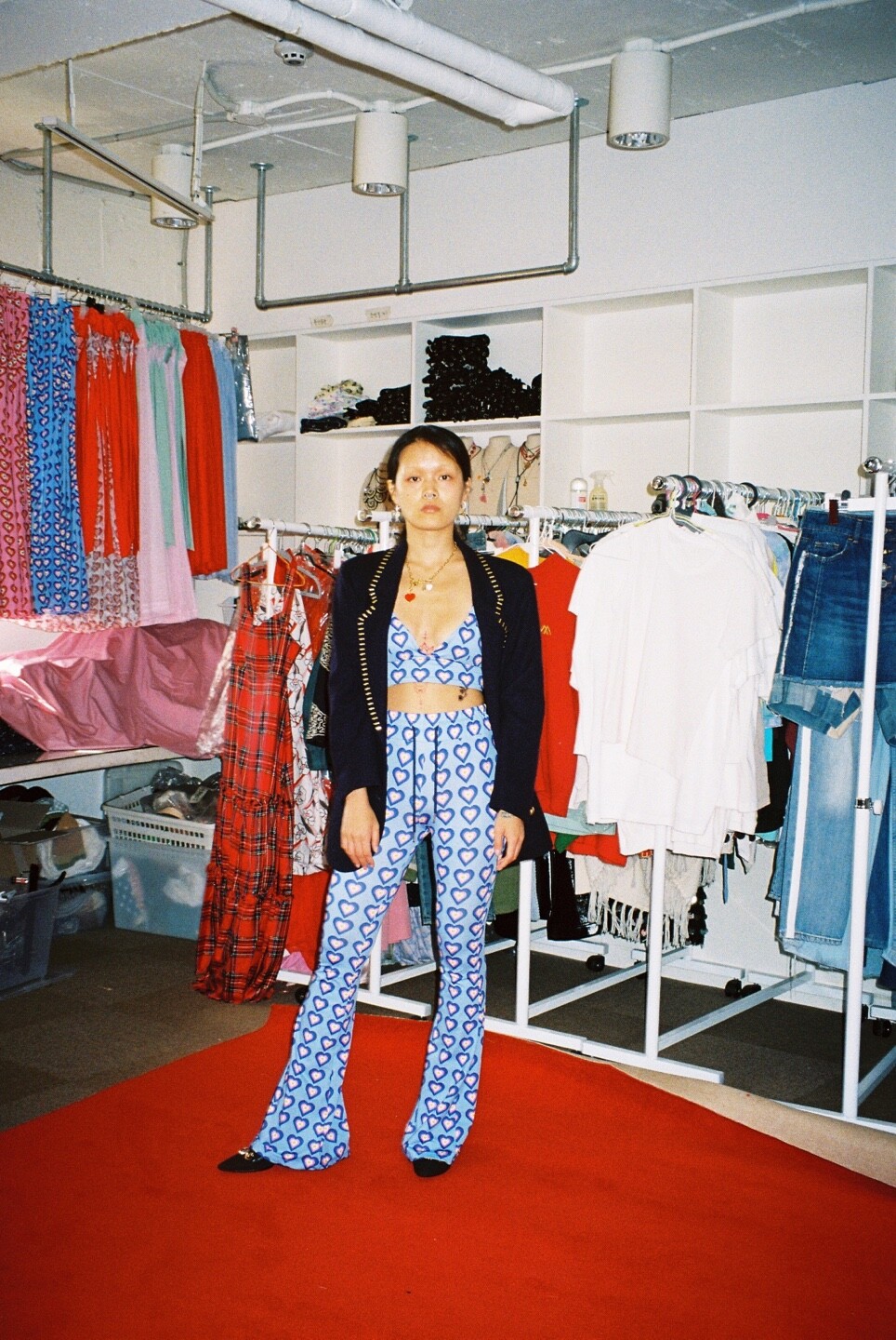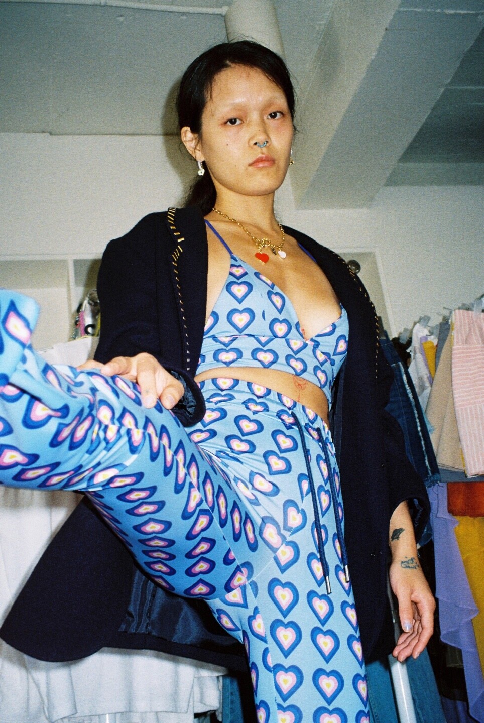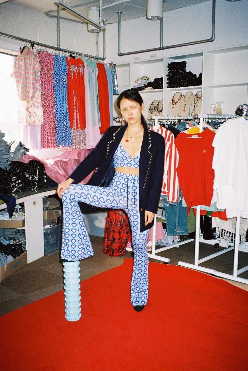 heart boot cut pants blue
