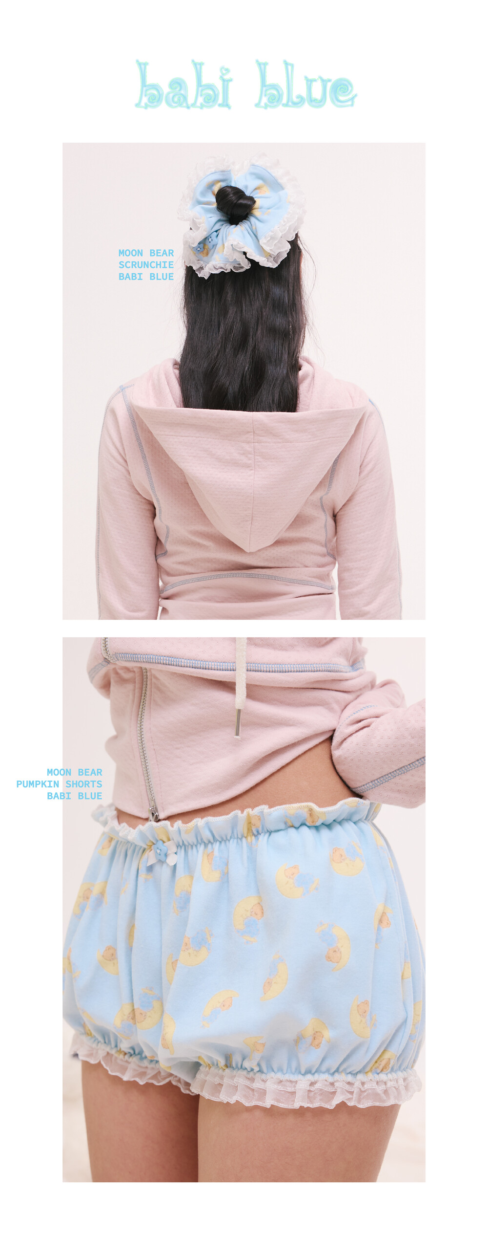 moon bear pumpkin shorts babi blue