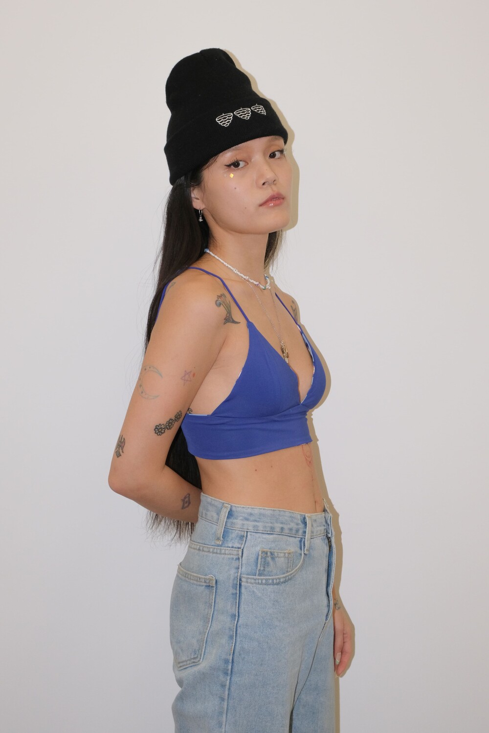 reversible bralette blue heart / navy (S-M, L)
