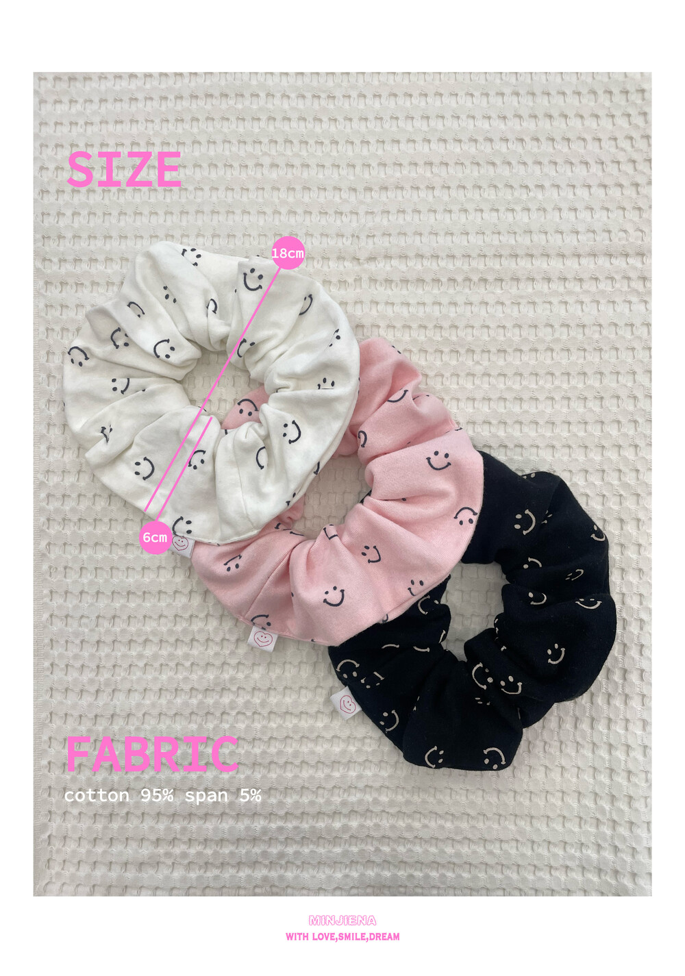 smile scrunchie (black,pink,ivory)
